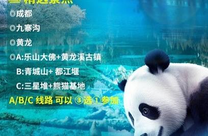 A、乐山大佛、黄龙溪古镇;B、青城山、都江堰;C、三星堆、成都熊猫基地;A/B/C 游客可以③选①参加